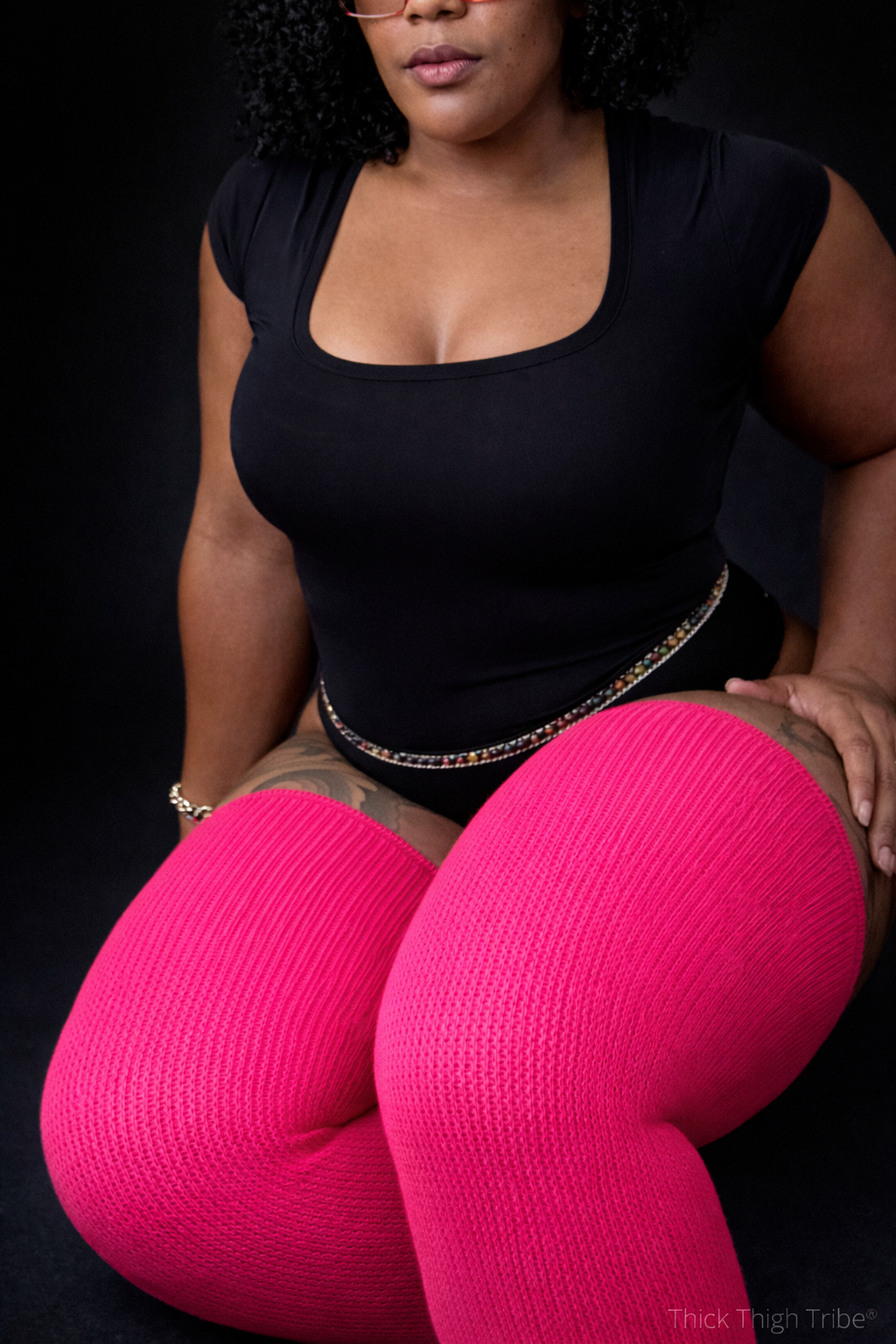 Blossom into your most vibrant self with our "Fuchsia Bold Bloom" thigh-high socks. Crafted with the radiant confidence and spirit of plus-size beauties in mind, these socks are more than just an accessory—they're a declaration of boldness, self-love, and unapologetic joy. The electrifying hot pink shade is designed to stand out, ensuring you capture the gaze and hearts of all who see you. Embrace the power of bold blooms and let your style flourish with every step.