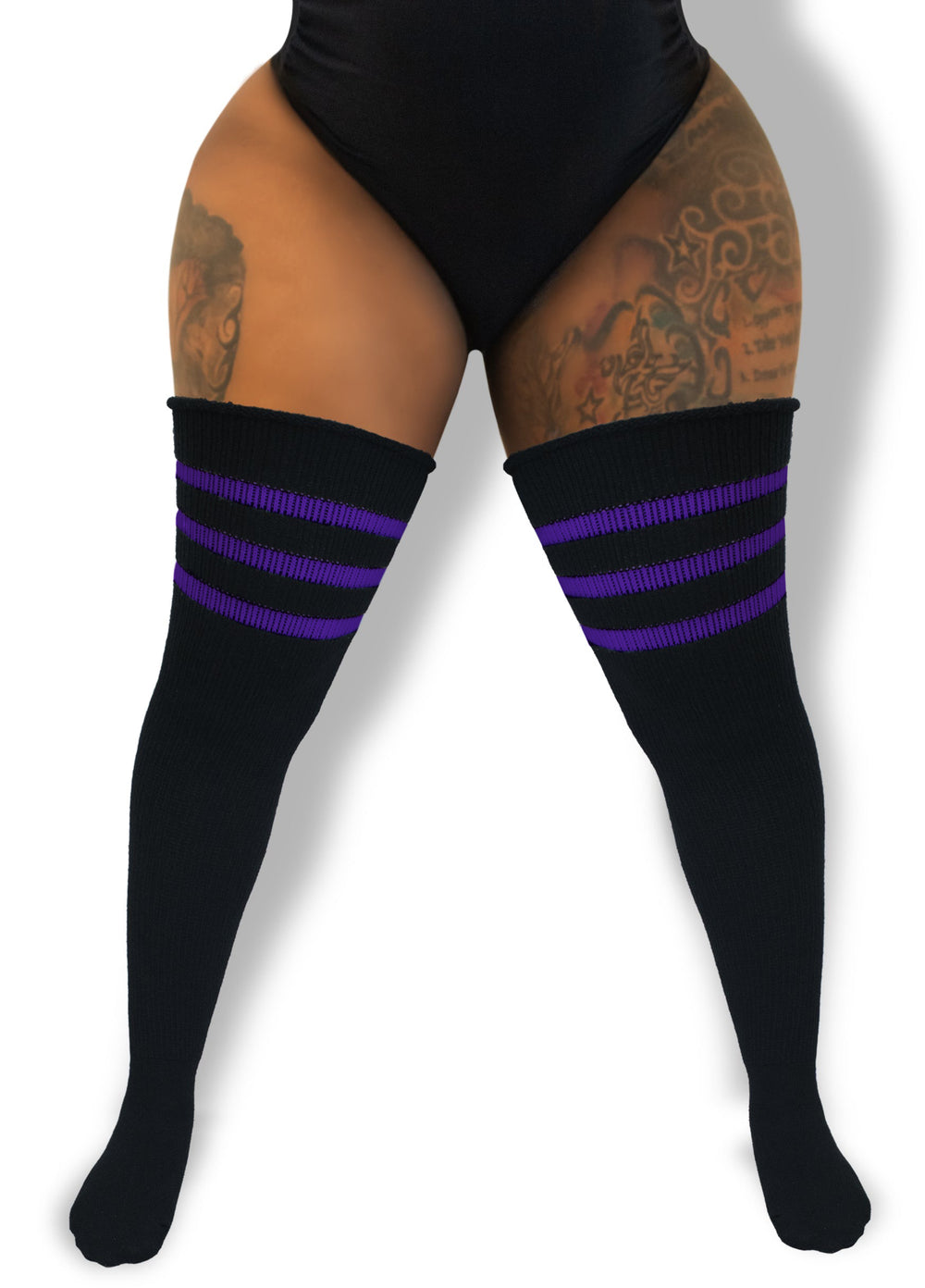 Because we believe fashion should be fearless and fun. Our Striped Plus Size Thigh-High Socks Collection is more than just an accessory; it's a declaration of confidence, a nod to inclusivity, and a celebration of style. With our range of designs and our commitment to quality and comfort, stepping out in one of our thigh-highs means stepping into a world where fashion is for everyone.